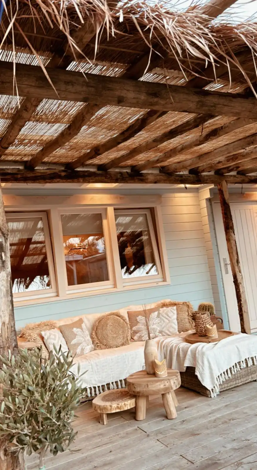 Bouw Boho Ibiza stijl overkapping steiger vlonder eiken kastanje