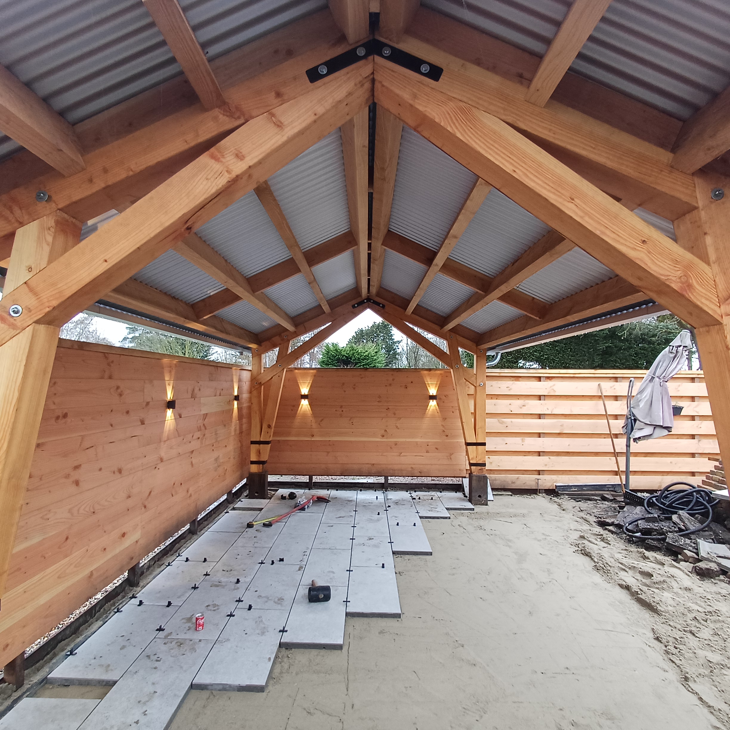Kniespant overkapping met golfplaten